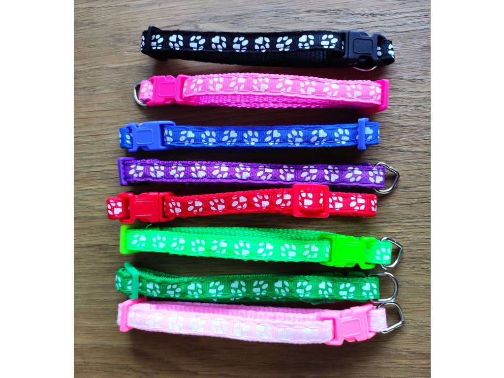 Barevné rozlišovací obojky pro štěňata a koťata. Velikost lze upravit. Měkoučký a pevný materiál. Uchycení přezkou, mají očko, které lze sundat. Dá se použít i jako identifikační obojek pro venkovní kočky.