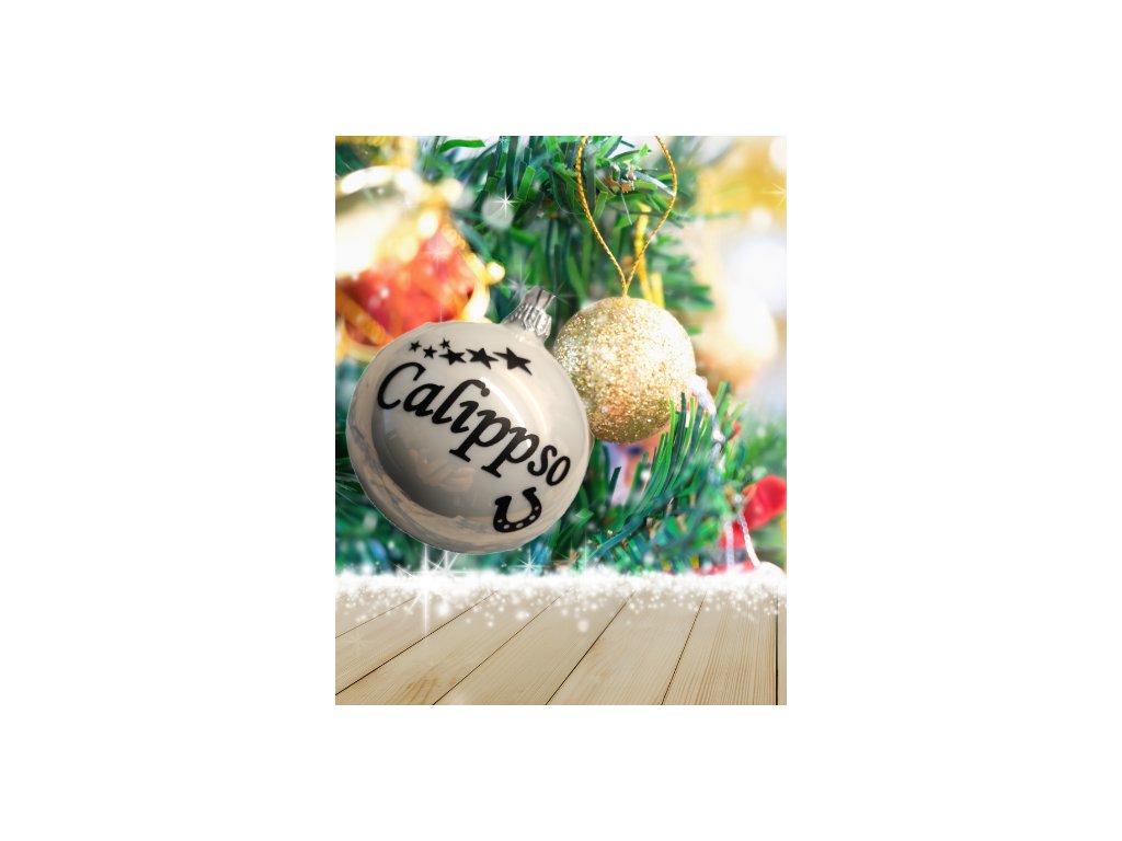 Bílá baňka nebo medově zlatá baňka pro milovníky koní. S motivem podkovy a hvězdičkami. Foukané sklo, český výrobek. Velikost baňky je 8 cm.
