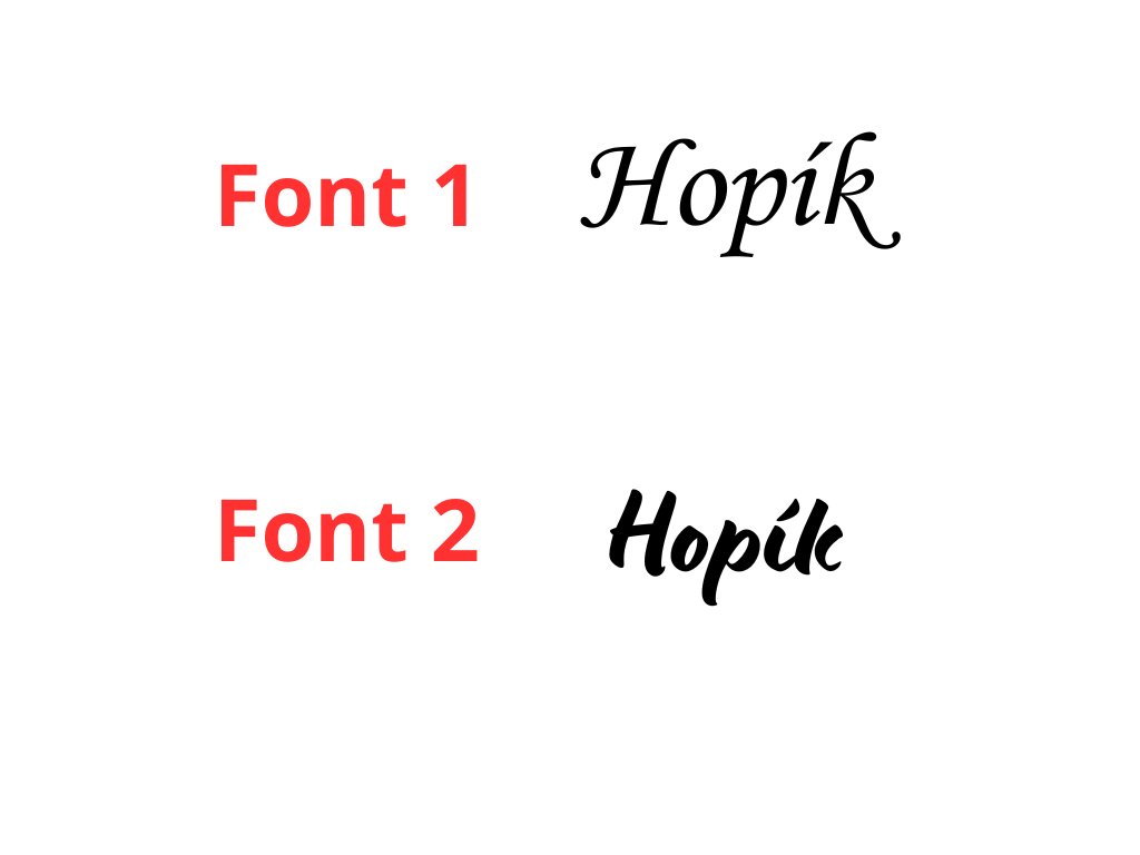 Výběr ze dvou fontů písma. Na fotografii použit font písma 2.