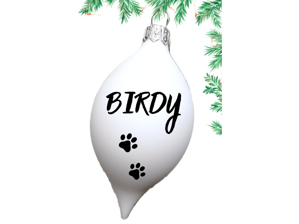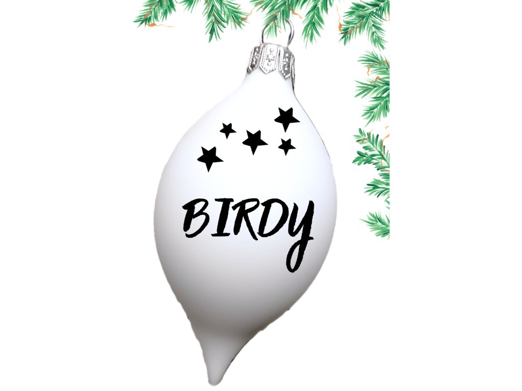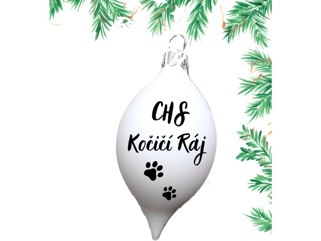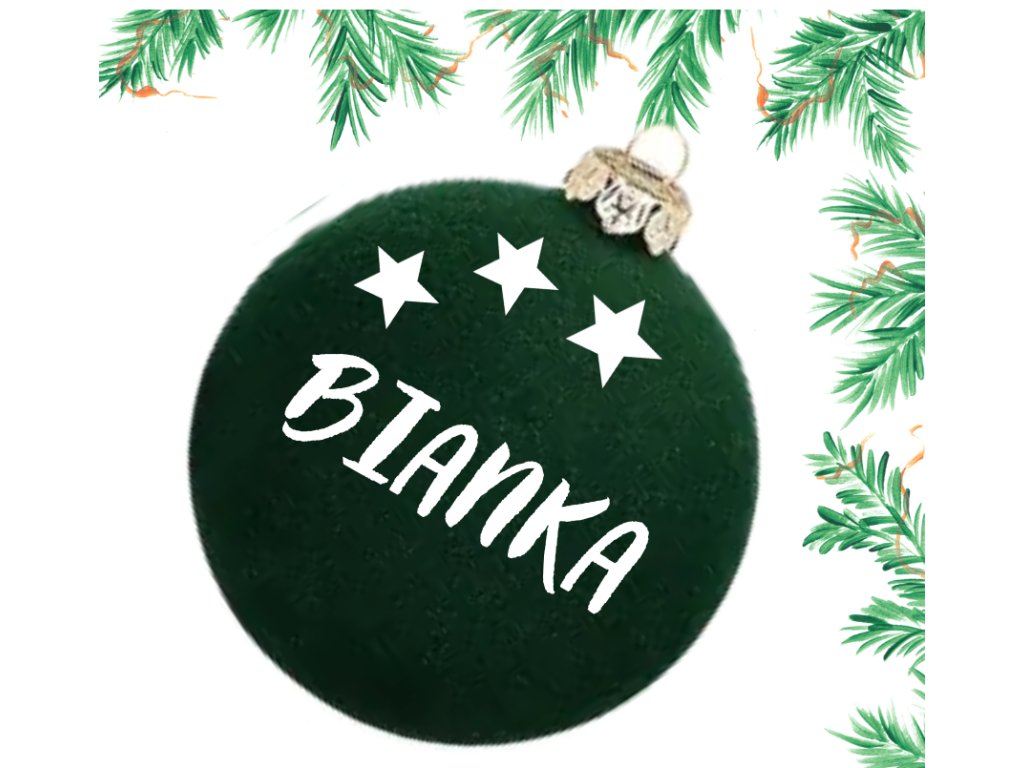 Netradiční vánoční baňky. Tvar oliva v bílé barvě, skleněné srdíčko a sametová zelená baňka s potiskem budou ozdobou Vašeho stromečku.